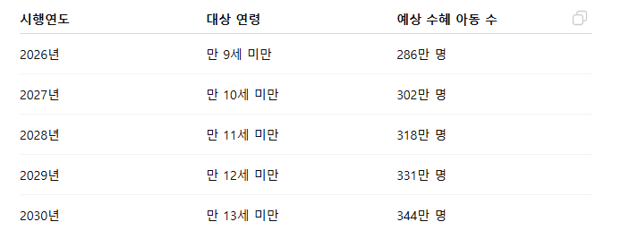 ✔️ 아동의 나이가 2026년 기준 만 9세 미만인가요?