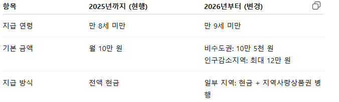 정부는 2026년부터 지급 금액에 ‘지역 변수’를 도입했습니다.